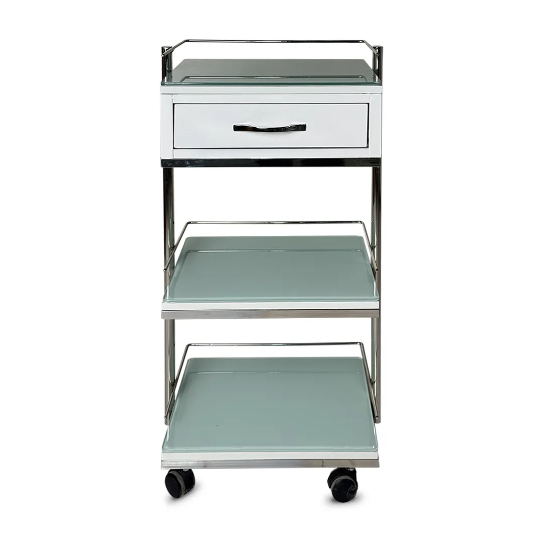 ترالی زیبایی یک کشو مدل Armeta-SKU13 انتخابی ایدهآل برای کلینیکهای زیبایی، مراکز درمانی و مطبها است که به دنبال یک ترالی کمجا، مستحکم و کاربردی برای استفاده روزمره هستند. این مدل با بدنه تمامفلزی، کشوی روان و رویه شیشه سکوریت ایمن، تعادل کاملی میان دوام، زیبایی و کارایی ایجاد کرده است.